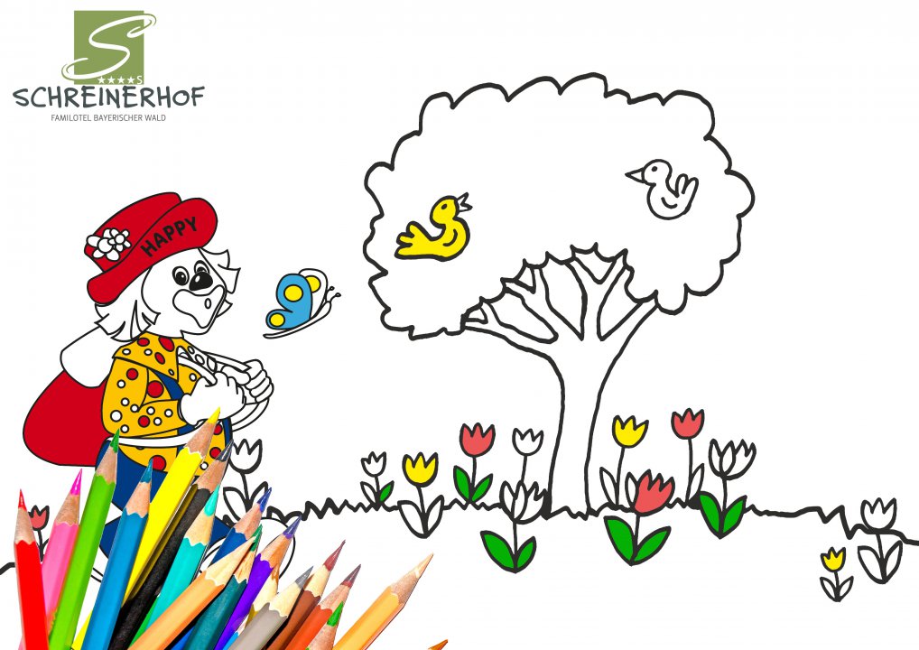 Ausmalbild Happy Beim Wandern Familotel Schreinerhof