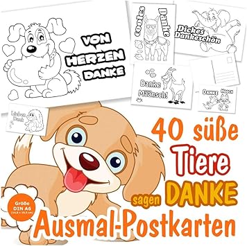 Unser Festtag 40 Dankeskarten Dankeschon Danke Sagen Karten Als Postkarten Zum Ausmalen Fur Kinder Ab 3 Jahre 40 Versch Susse Lustige Tier Bilder Amazon De Burobedarf Schreibwaren